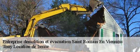 Lorsque vous avez un projet de démolition Saint Romain En Viennois à organiser, vous pouvez contacter le service Tony Location de benne. Professionnels dans le domaine, nous sommes disposés à vous réaliser des interventions de qualité répondant à vos projets. Le fait de contacter un spécialiste dans le domaine vous permet d’assurer la qualité des rendus et des travaux à effectuer après la démolition. En effet, il est important de nettoyer et d’enlever tous les déchets issus de la démolition. Si vous avez un projet, faites-le nous parvenir pour une étude en amont.